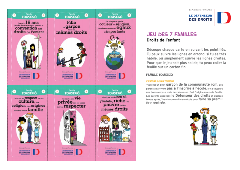 générale des Nations Unies et ratifiée quelques mois plus tard par la France. Impliqué dans la célébration du 25ème anniversaire de la Convention et considérant que les premiers intéressés par cette Convention, encore trop souvent méconnue, sont les enfants et les adolescents, le Défenseur des droits a créé un jeu des 7 familles à destination des 6-12 ans.