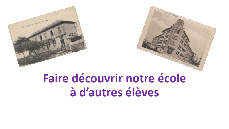 Il s’agira pour des élèves de deux classes de milieux géographiques très différents de se présenter mutuellement leur école (son emplacement, son histoire, ses spécificités).